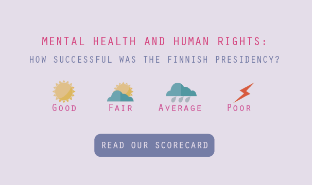 Mental Health Europe (MHE) released a Scorecard measuring performance of the Finnish Presidency of the Council of the European Union (July-December 2019) in relation to mental health and human rights.