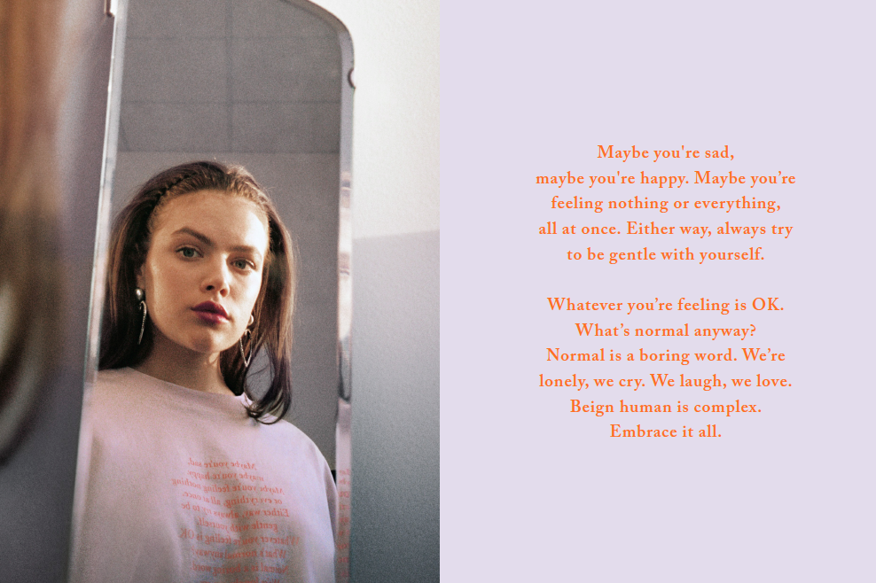 This second collaboration and campaign ‘Embrace your feels’ explores mental health and its impact on daily life, encouraging important discussions around this topic to continue and evolve.