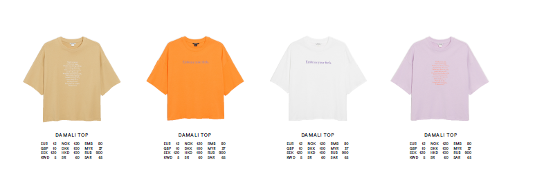 The campaign is accompanied by the release of four limited edition t-shirts. Featuring two different prints, with the statements; ‘Embrace your feels’ and a longer manifesto in support of self-care and zero stigma conversations. The collaboration will be available in all Monki stores worldwide and online from mid-May.