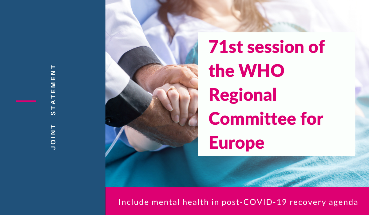 Mental Health Europe, together with Euro Health Net and other stakeholders, released a joint statement to highlight the importance of prioritising mental health by investing in mental health services and placing mental health at the heart of the post-COVID-19 recovery agenda.As part of the 71st session of the WHO Regional Committee for Europe on 14 September 2021, Mental Health Europe’s director Claudia Marinetti is holding an intervention to discuss the Pan-European Mental Health Coalition and the implementation of the WHO European Framework for Action on Mental Health.