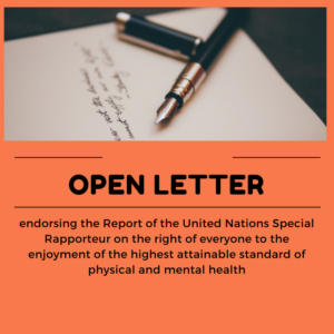 The letter endorses the positive messages for a global approach to health and psychological wellbeing which moves away from the medicalisation of mental health and ensures the participation of diversity of rights-holders and relevant stakeholders including users and survivors of services, civil society and communities and empowers them.