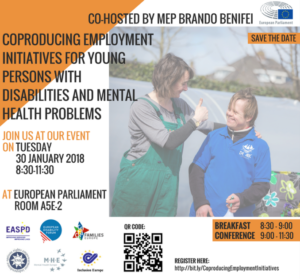 We are pleased to invite you to our joint event in the European Parliament on “Coproducing employment initiatives for young persons with disabilities and mental health problems”.